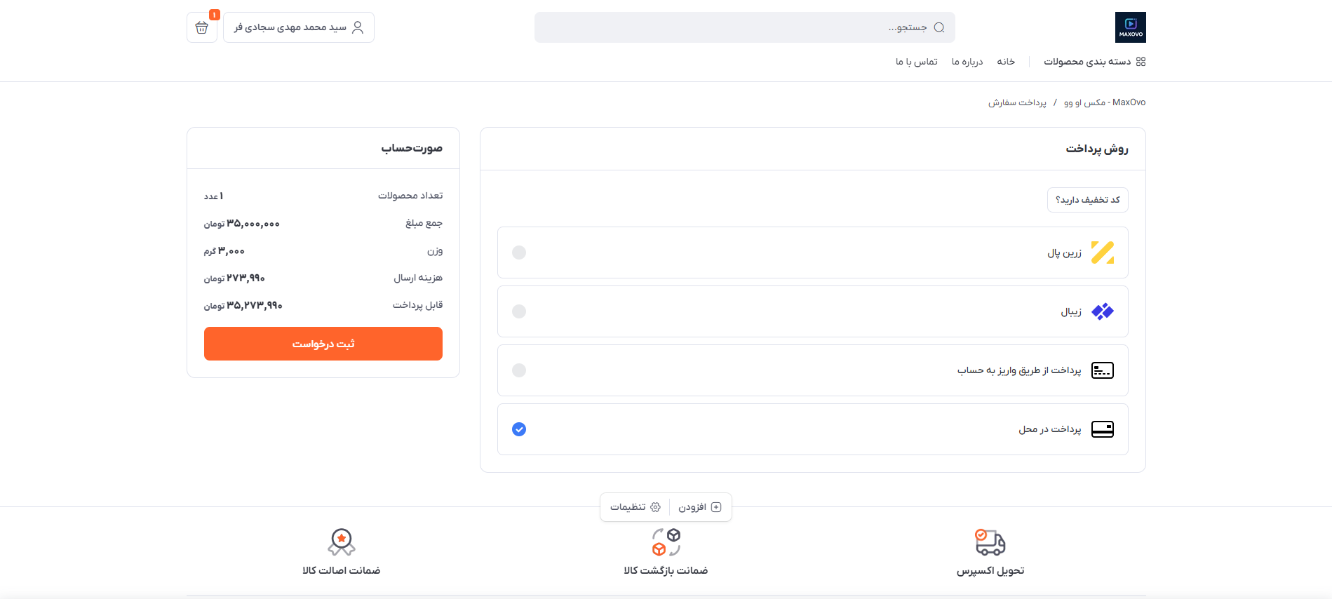 آموزش خرید اینترنتی با پرداخت در محل در مکس او وو